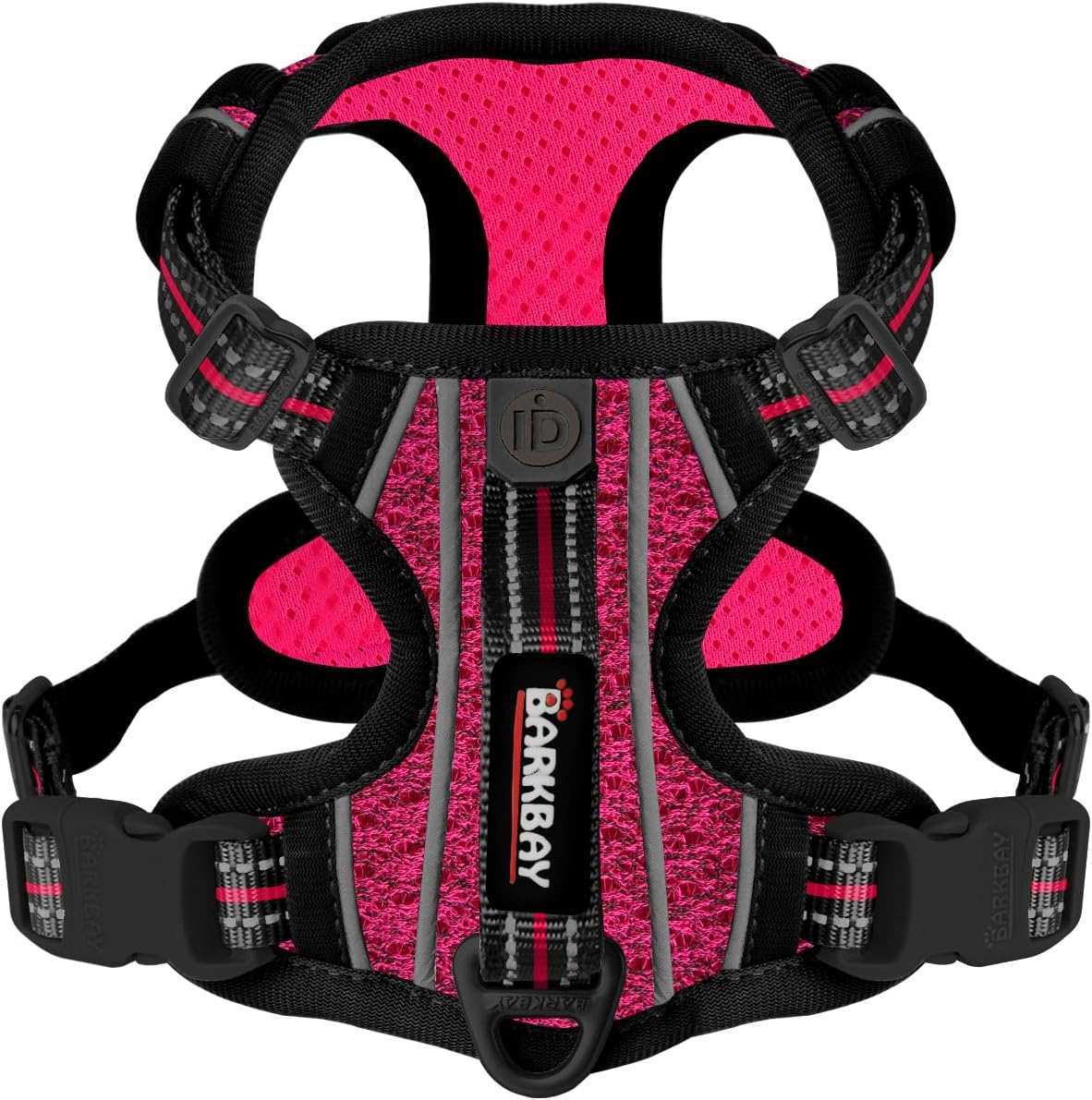 BARKBAY Dog Harness No Pull with ID Tag Pocket - Heavy Duty, Reflective, Easy Control for Small Dogs(Pink/Black,S)
