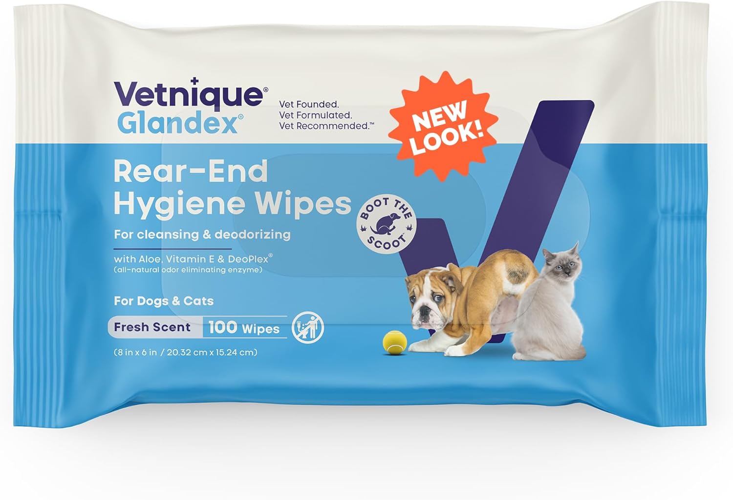 - WITH ALOE VITAMIN E MOISTURIZERS & SKIN CONDITIONERS - To help soothe & restore the rear end area, leaves your pet happy and healthy. Use with Vetnique's Glandex Anal Gland Supplements for best results