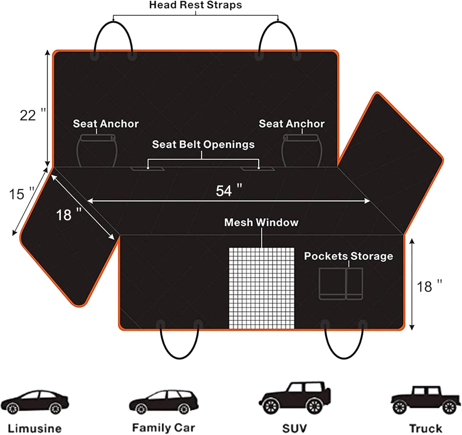 - 🎄SIZE & MATERIAL - Maximum open size (54"W x58"L) dog car seat cover fits to different vehicles like STANDARD cars, trucks, SUVs, including baby car seats. Heavy-duty material with 600D oxford & NEW PU material is tough as nails, scratch resistant and 100% waterproof.
