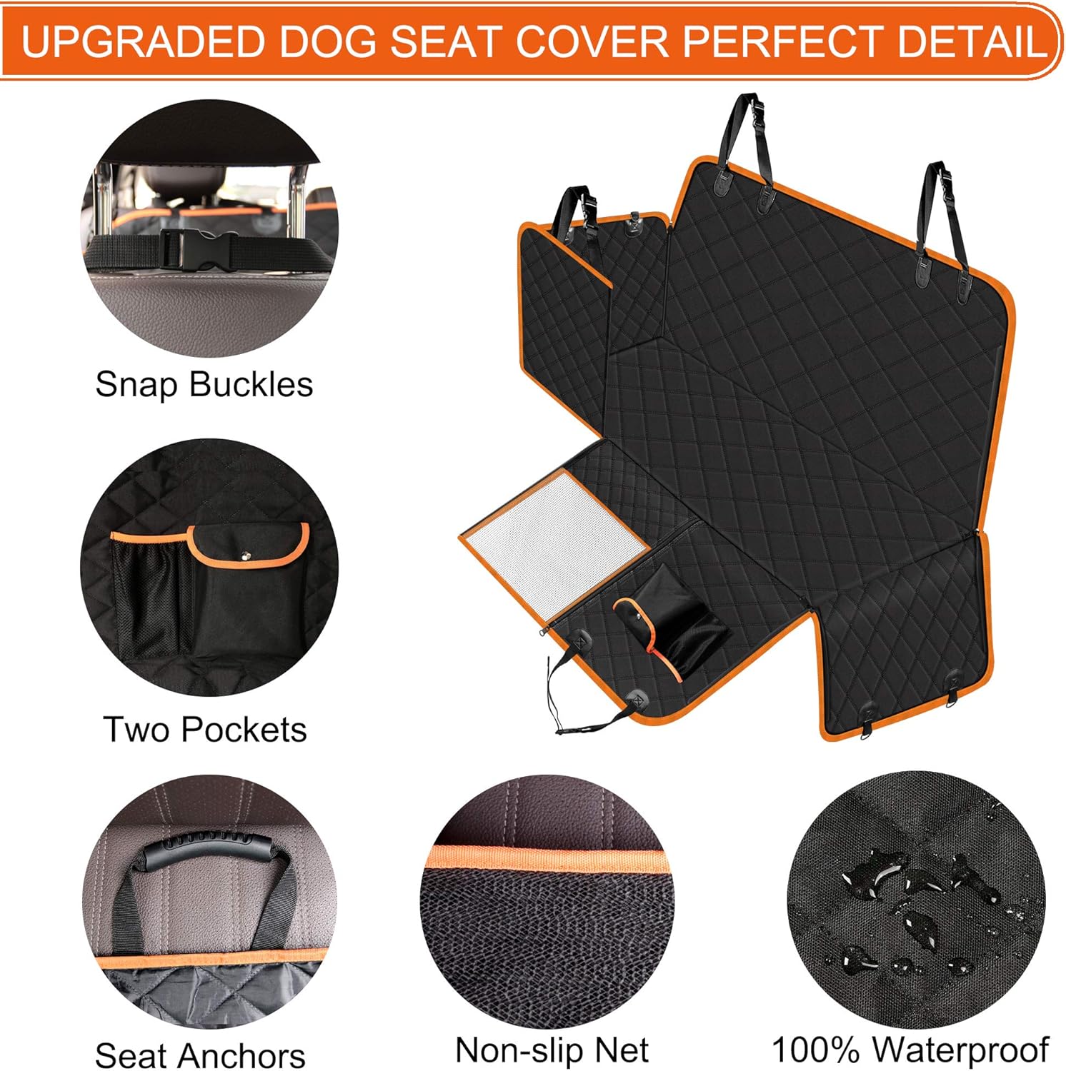 Femuar Dog Car Seat Cover, Waterproof Nonslip Pet Seat Cover for Back Seat with Storage Pockets Mesh Visual Window, Heavy Duty Scratchproof Pet Dog Seat Cover Hammock for Cars Trucks and SUVs