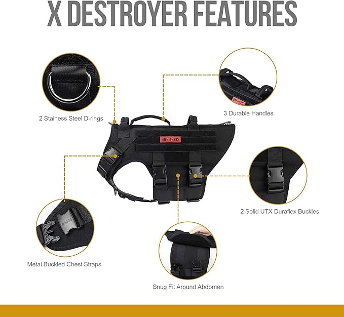 - QUALITY AFTER-SALE GUARANTEE: OneTigris large tactical dog harness(X DESTROYER Harness) have 1 year warranty. If you are not satisfied with dog vest harnesses, feel free to reach out and we will reply in 24 hours