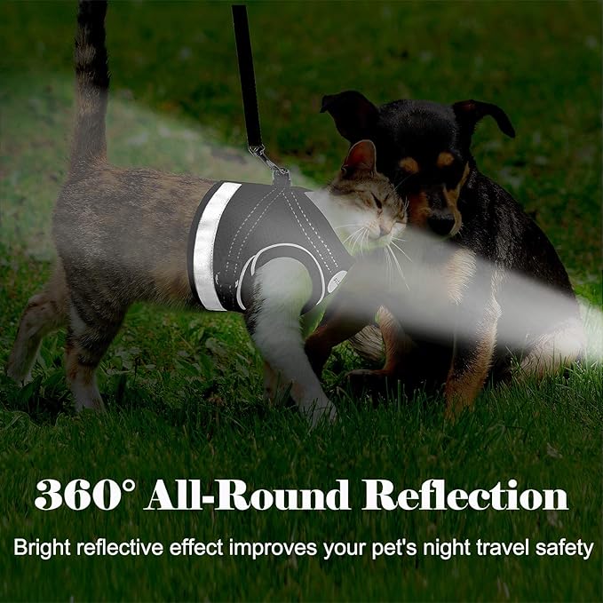 - 【Reflective and Adjustable】There are 2 adjustable buckles on the pet harness that. The adjustable shoulder straps allow you to quickly customize the vest to fit your cat's size, so it won't slip out easily when walking outdoors. 360°all-round reflective design greatly. Bright reflectors ensure safe outdoor activities day and night.