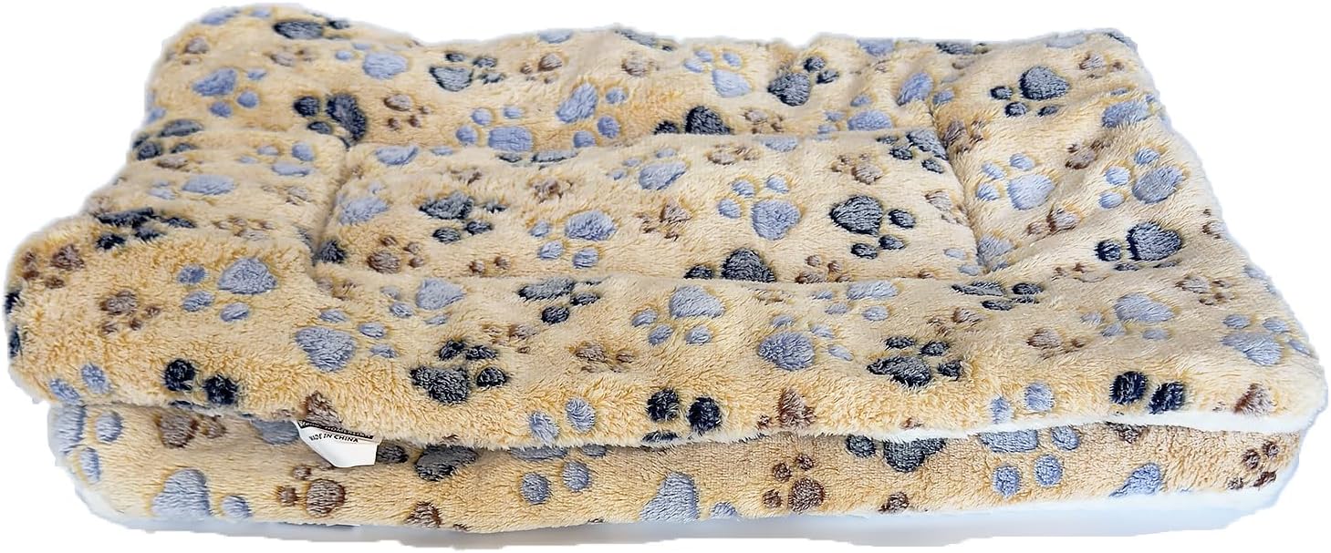 2 Pcs Pet Bed Mats. Ultra Soft Pet (Dog/Cat) Bed with Cute Prints. Reversible Faux Lambswool Kennel Pad for Medium Small Dogs and Cats. Machine Washable Pet Bed.