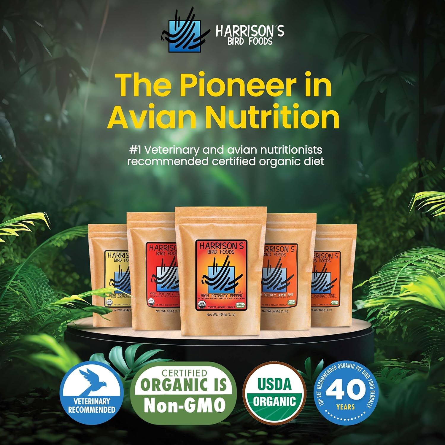 Harrison's Bird Foods High Potency Pepper—Maximum Nutritional Formula for Small to Medium Birds, Certified Organic Non-GMO Pet Bird Food, Vet-Developed, Suitable for All Life Stages, 454 g/ 1 lb