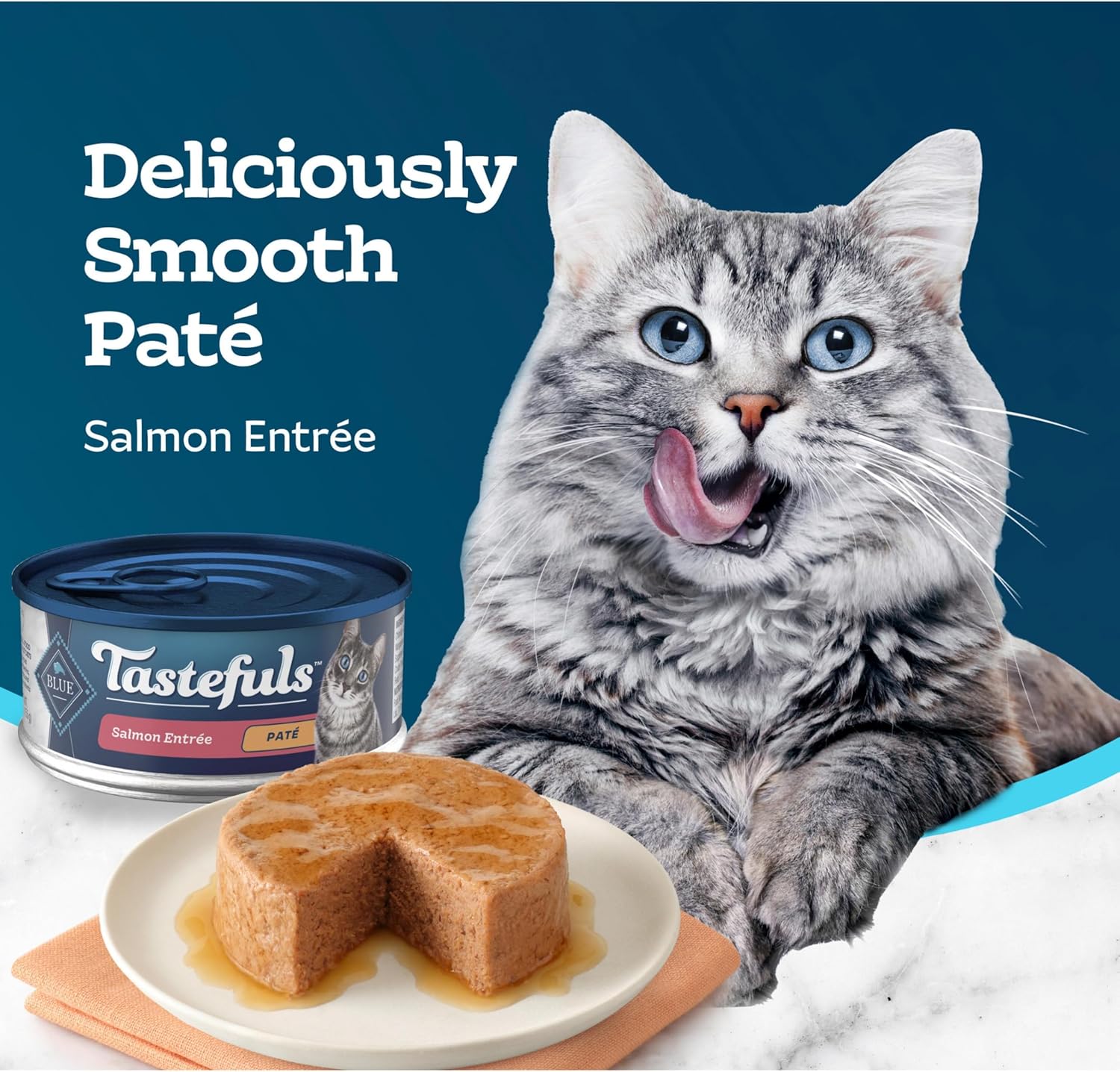 - Contains: Twenty-four (24) 5.5-oz can of BLUE Tastefuls Wet Cat Food, Salmon Entrées Paté
