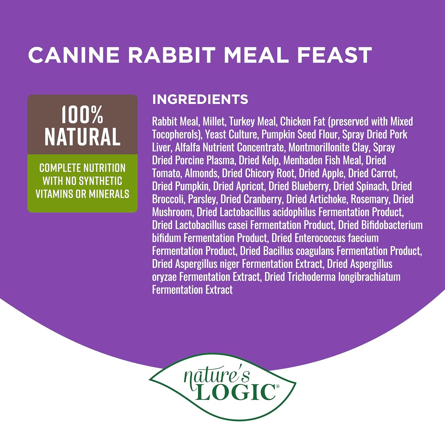 NATURE'S LOGIC Dry Dog Food - 100% Natural - No Synthetics - for All Ages, Sizes, Breeds - Free from Common Allergens, High Protein - Rabbit Meal Feast, 25lbs