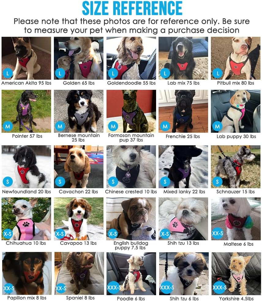 - 【Adjustable & Easy to Use】-- The harness is easy to put on with two buckles on the chest section. Four adjustment points on the harness straps make it simple to achieve a comfortable fit for small, medium, and large dogs. The breathable mesh chest vest harness is adjustable to alleviate pressure and ensure a perfect fit. The seat belt is also adjustable and easy to connect in the car or trunk.
