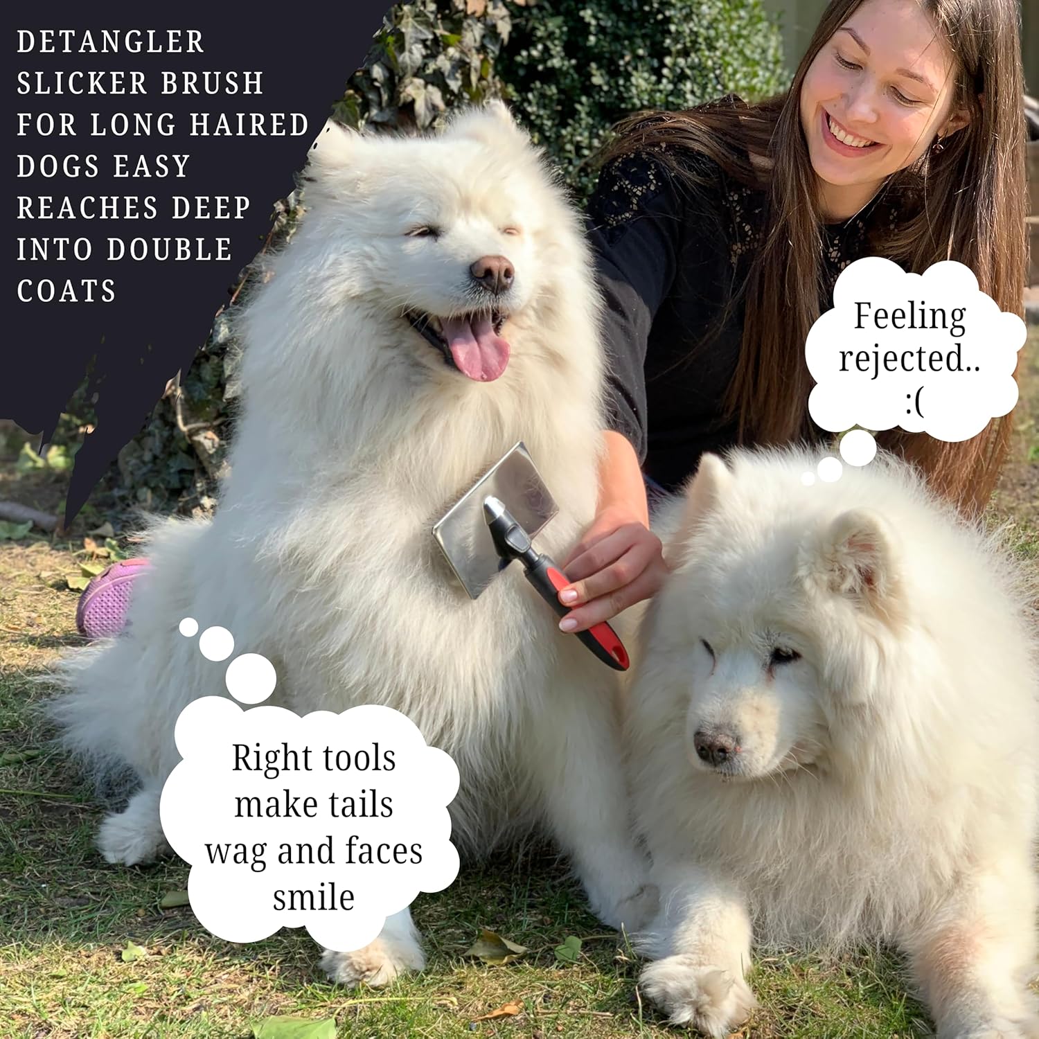 Dog Slicker Brush - Large - Protective Ball Tipped Pins Massages Pet Skin - Professional Groomer Dog Brush for Goldendoodle - Golden Retriever Brush (Large Size)