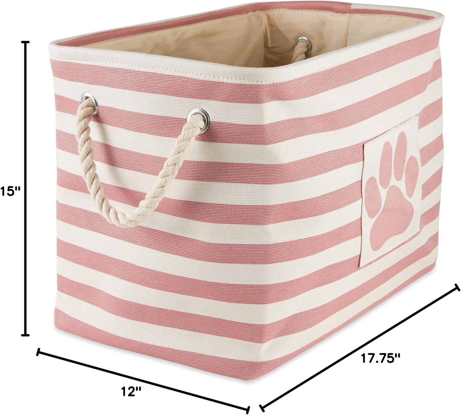 Bone Dry 5743 Pet Storage Collection Striped Paw Patch Bin, Large Rectangle, Rose