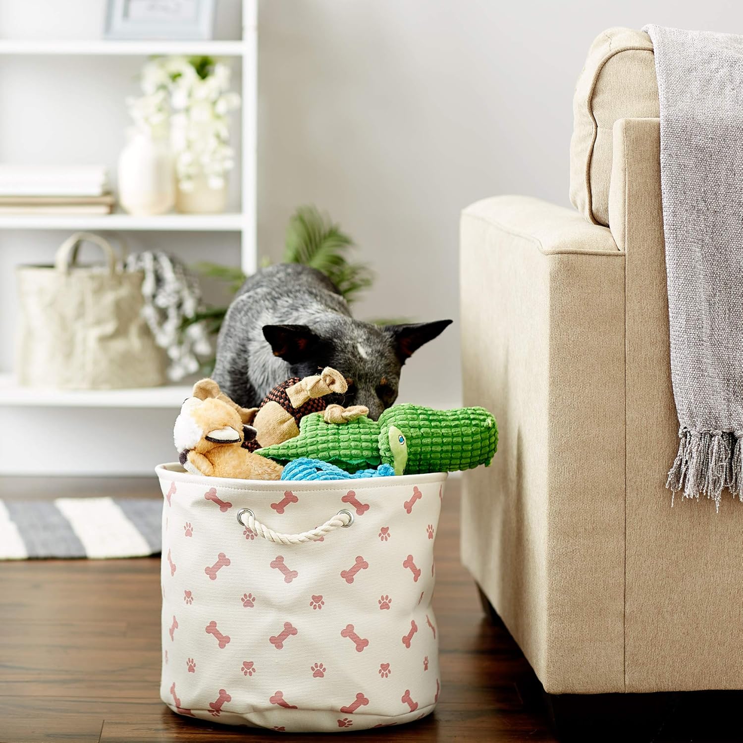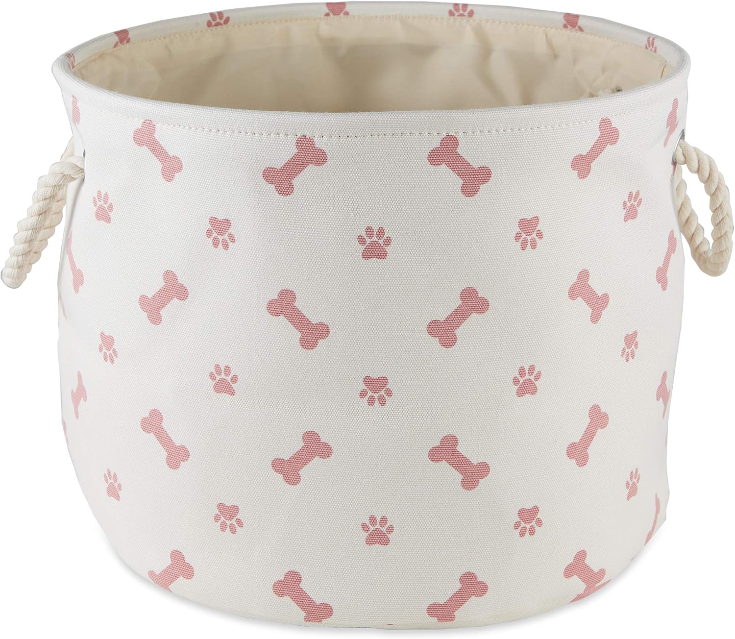 Bone Dry Pet Storage Collection Paw and Bone Print, Medium Round, 12x15x15, Rose