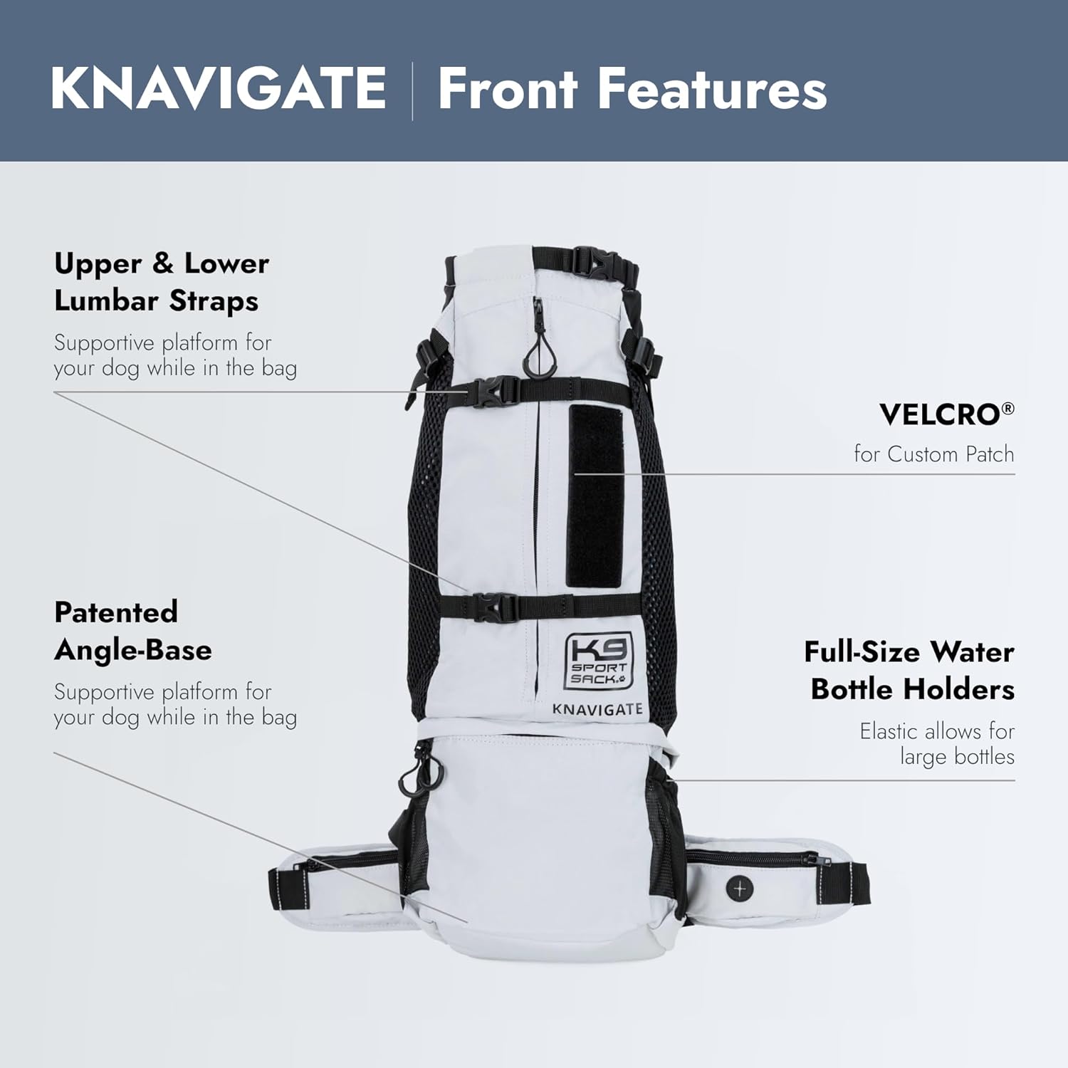 - ADDITIONAL STORAGE - Knavigate features a zippered storage pocket, two pockets on the waist belt, and two full-size water bottle holders on the sides of the carrier.