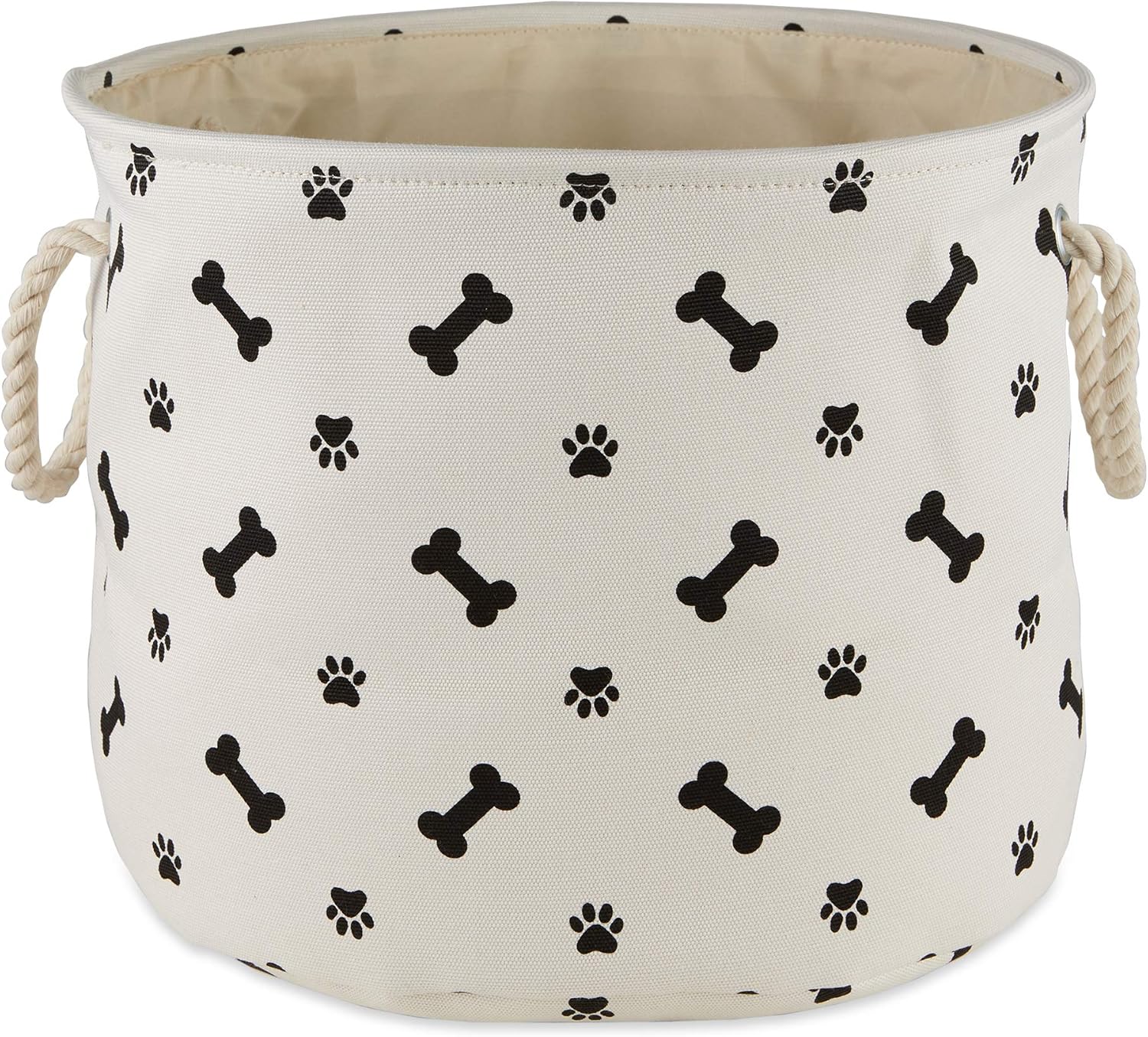 Bone Dry Pet Storage Collection Paw and Bone Print, Medium Round, 12x15x15", Black