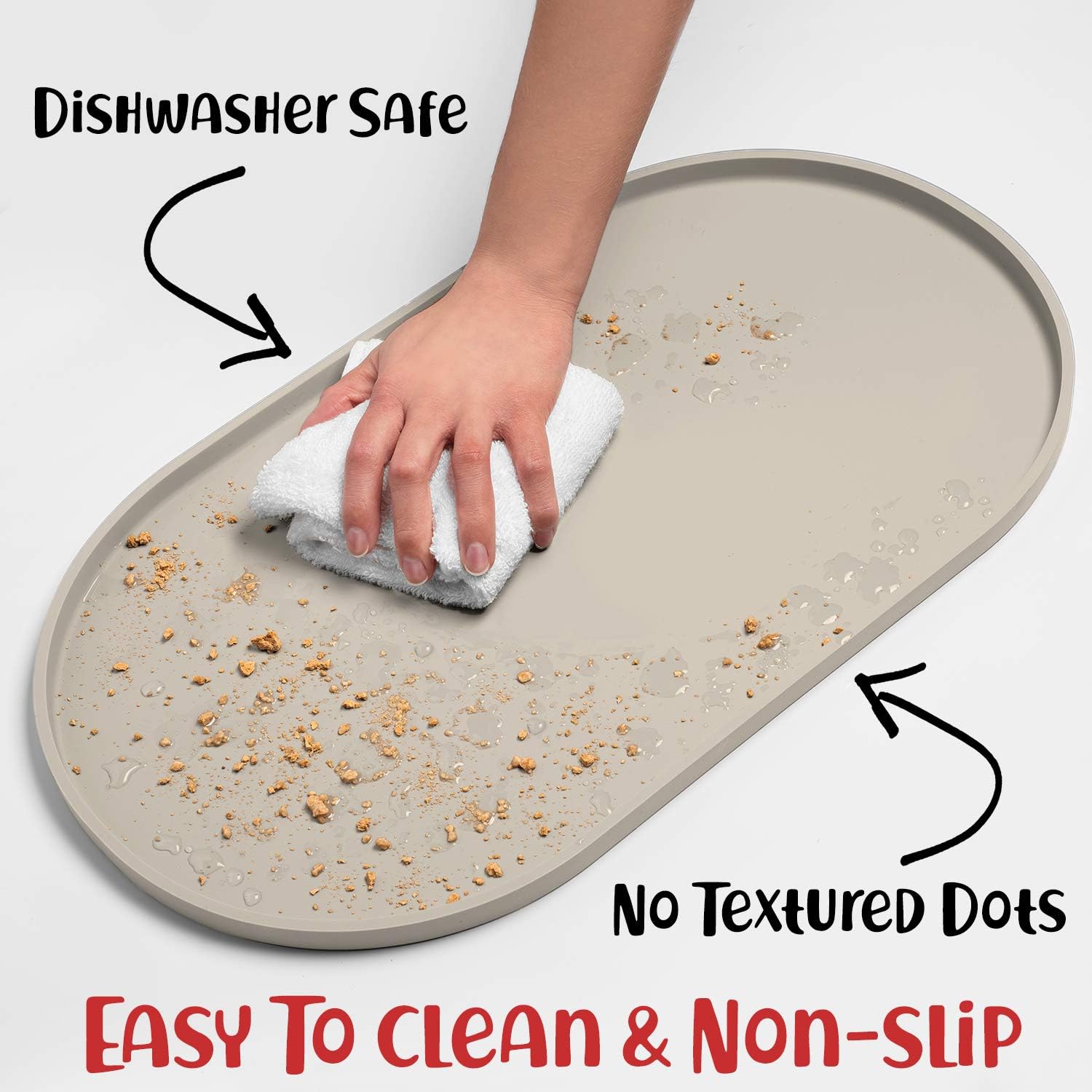 DogBuddy Dog Food Mat - Waterproof Dog Bowl Mat, Silicone Pet Mat for Food and Water Bowls, Nonslip Pet Feeding Mat with Edges, Dogs Food Mats for Floors, Puppy Supplies (Large, White Sand)