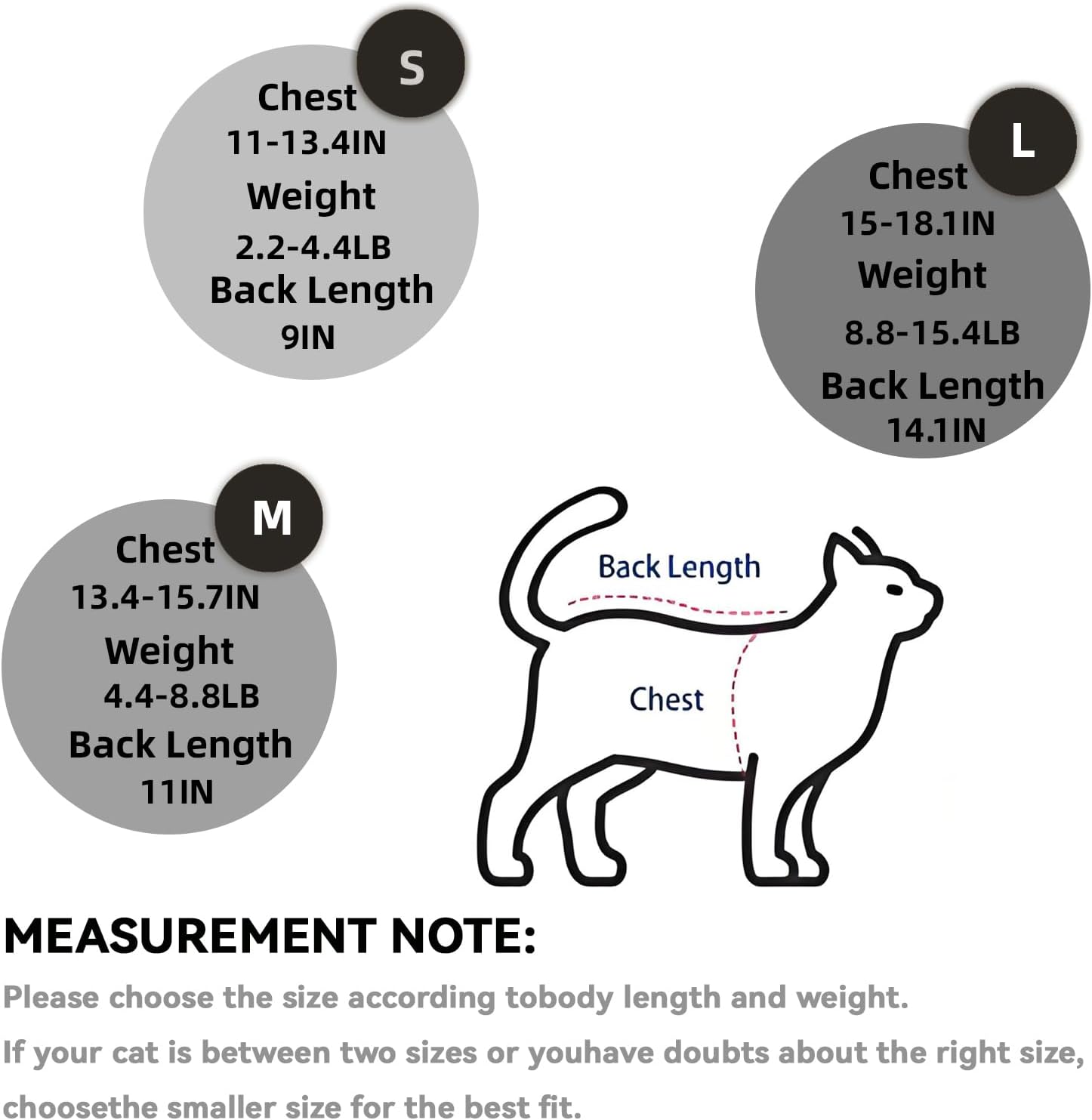 - ❤MEASURES:There are 3-4 Sizes available for different ages of cats. Size S for Weight 2-3.4 lbs. Size M for3.4-7 lbs. Size L for 7-14 lbs. NOTE: This Suit is slight Elastic. Don't use the breed of the cat to determine the size. If there any problem about the size or quality of the kitten clothes for kittens only, we support Free Return or Replacement with No Reason. Just contact us, we are at service all the time for you and your pets.