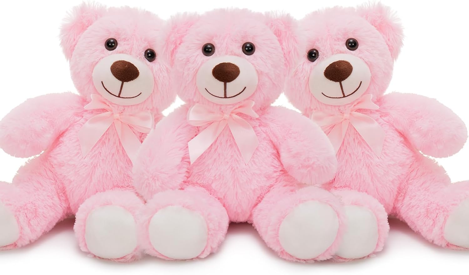 - Premium Material & Safe: Our 3pcs pink bulk teddy bears stuffed animals are filled with high-quality filler and feature securely stitched eyes that won’t loosen. The flame-resistant plush meets strict SAFE certification, making them perfect for cuddling—whether at bedtime or playtime.