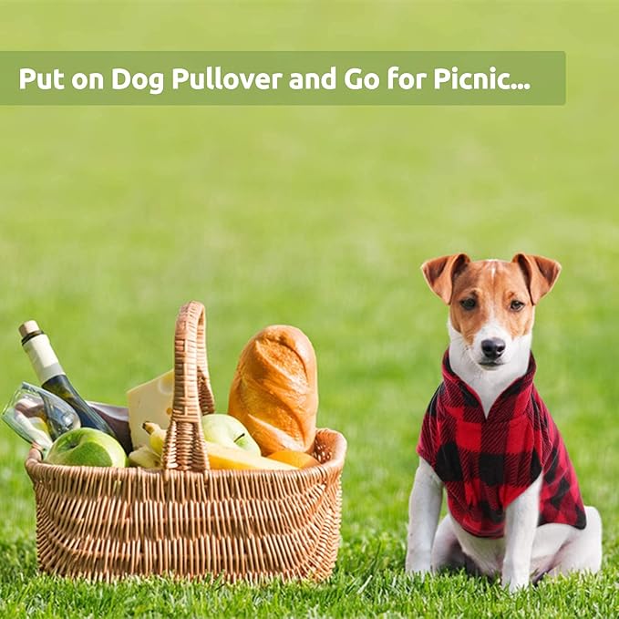 - This dog pullover is designed with classic red & black buffalo plaid, which brings happiness and good luck for new year. A hole on the back is for leash. Attractive band collar is really distinctive.