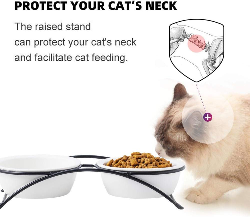 - Sturdy and Practical Design: This set includes two 12oz ceramic bowls, perfect for small cats. Separate food and water bowls reduce refills and easily meet your cat’s daily needs.