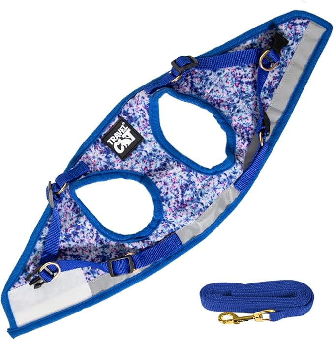 - 2-IN-1 HARNESS AND LEASH SET: This Cat Harness and Leash Set is designed to keep your feline stylish and secure. With Velcro closures and adjustable straps, it ensures a snug, comfortable fit for your cat's outdoor adventures.