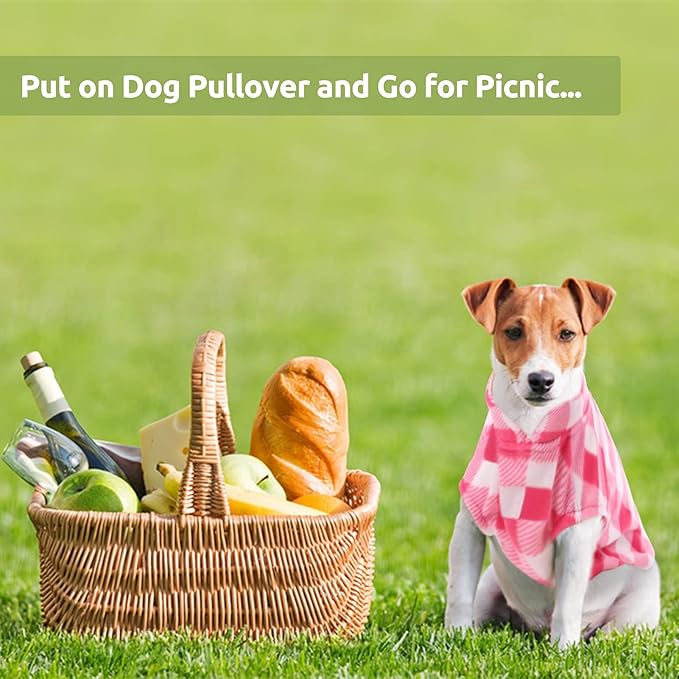 - This dog pullover is designed with classic pink & white buffalo plaid, which brings happiness and good luck for new year. A hole on the back is for leash. Attractive band collar is really distinctive.