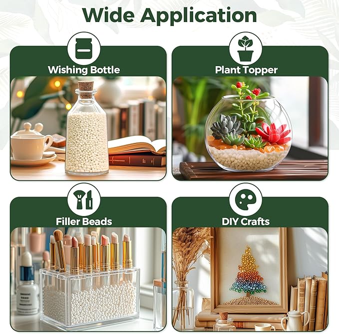 - Vase Filler Beads- Our small glass rocks are ideal accessories for table vases or wall planters. The vases will stand out in your living room, bedroom, kitchen, bathroom or balcony with our pebbles.