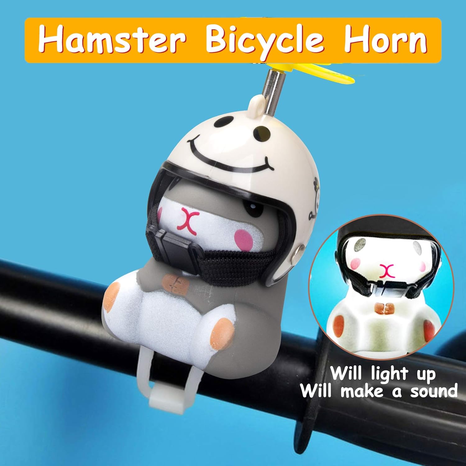 wonuu Duck Bike Bell with Light and Helmet Cute Hamster Bicycle Horn, Dashboard Decoration Hamster Toy Motorcycle Bike Bells Rubber Duck Car Dashboard Decorations (White Smile-Hamster)