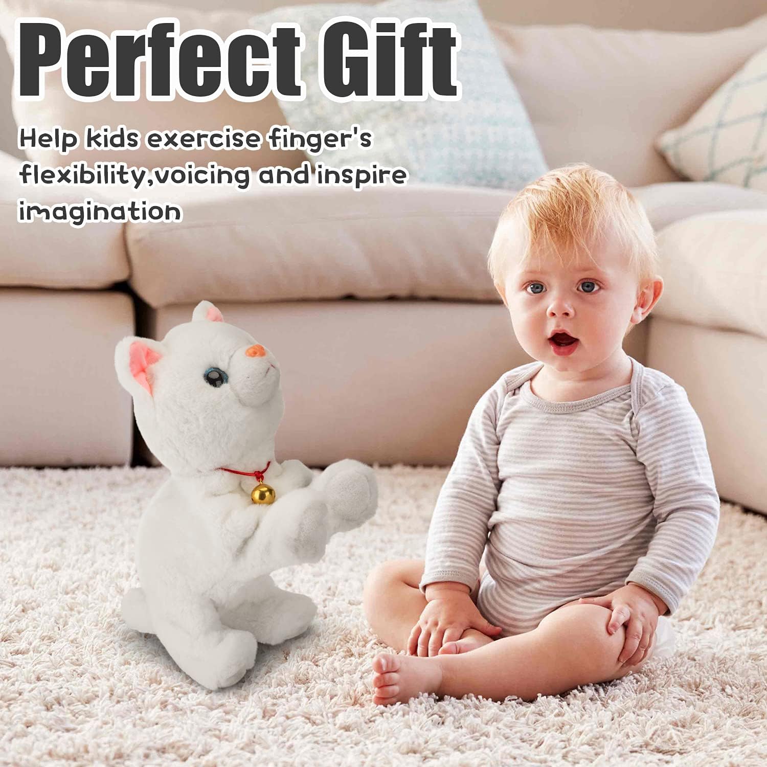Smalody Interactive Electronic Plush Toy - Upgrade Robot Talking Cat Toys with LED Light Eyes, Animals Sound Control Electronic Pet for Kids, Kitten Toys for Boys & Girls Kids(White)