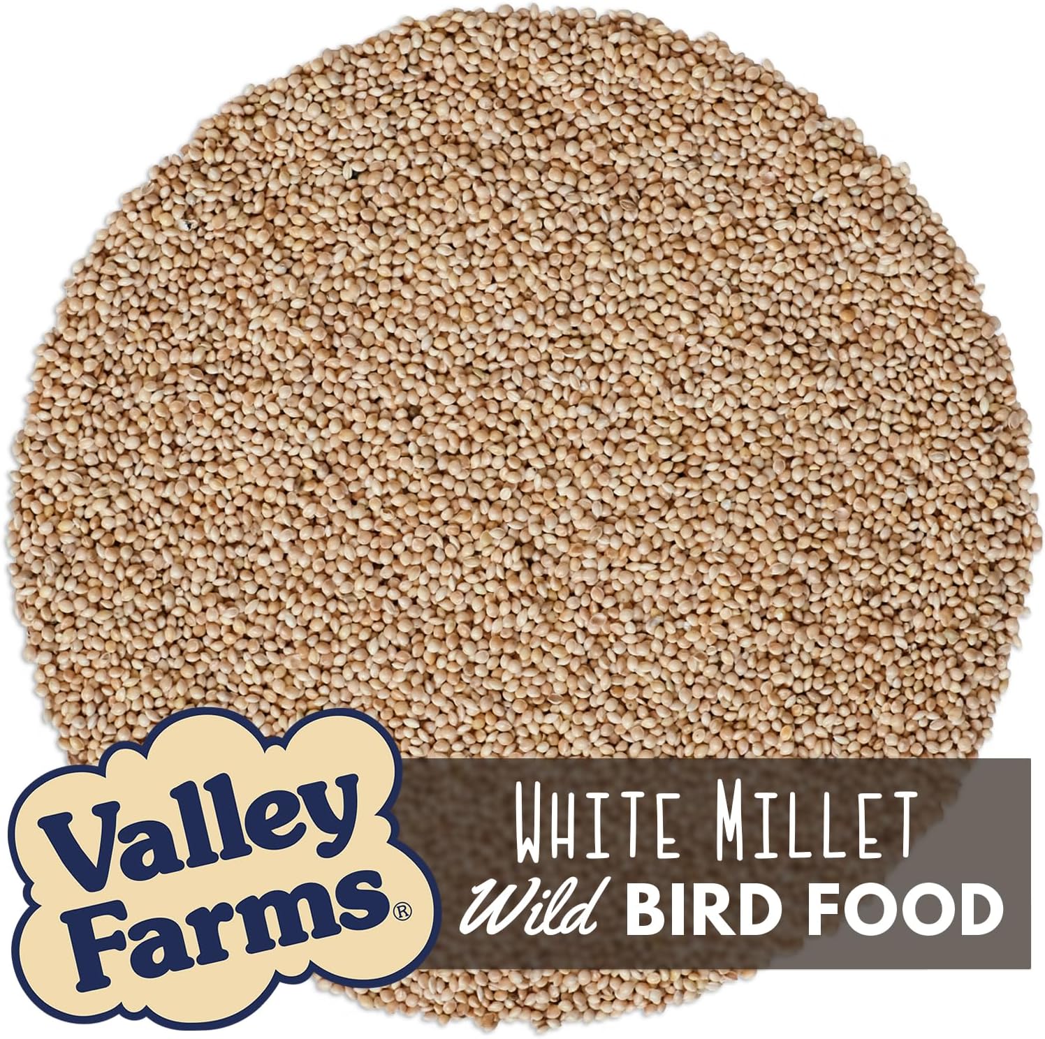 - ๐งนWhite millet makes very little mess. The husks are thin and easily blow away in the wind. Valley Farms white millet is vacuumed cleaned and always fresh.