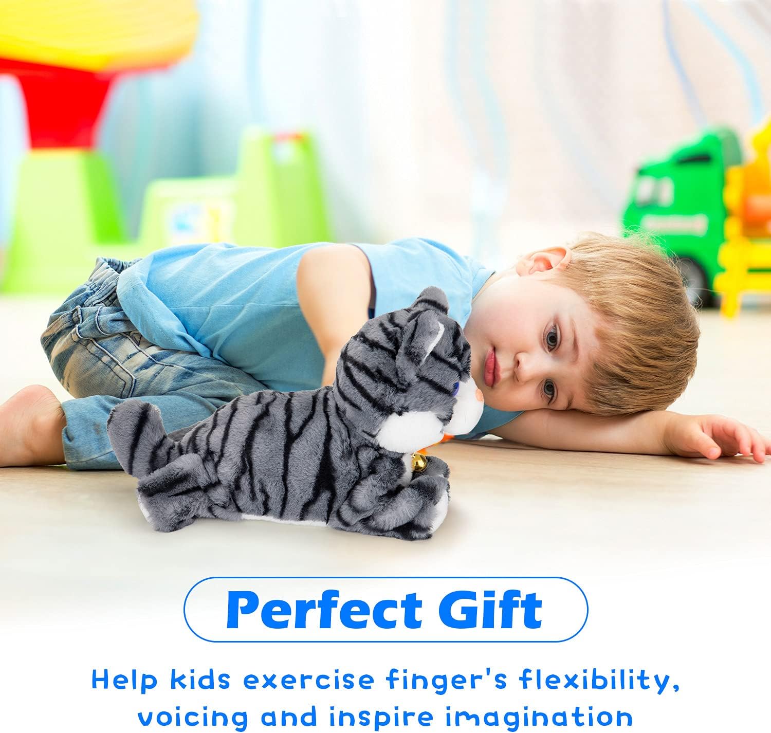 - ๐ใI AM SAFEใI am meek and well-behaved robot kitten, I donโt hurt people. Because I have soft plush material, skin-friendly and safe, filled with PP cotton, good resilience, and fine workmanship.With a smooth and soft body, I'm sure you will like to hug me, but please don't ride me. (As I am small with size 26*28.5cm)