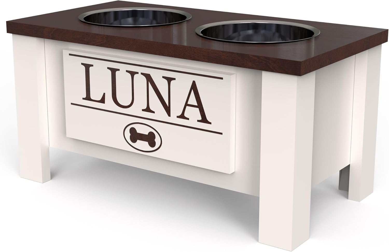 GrooveThis Woodshop - Personalized Elevated Dog Bowl Stand for Large, Medium, Small, X-Small Dogs - Stainless Steel Food and Water Bowls - Raised Dog Dish with Internal Storage (Medium, Dark Walnut)