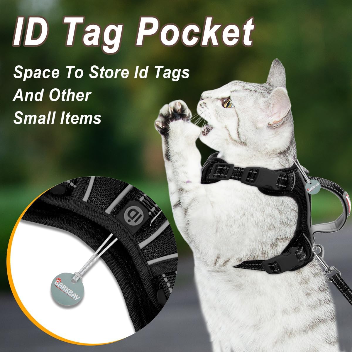 Cat Harness and Leash Set for Walking Escape Proof for Small Large cat Kitten Harness with ID tag Pocket (Black,XS)