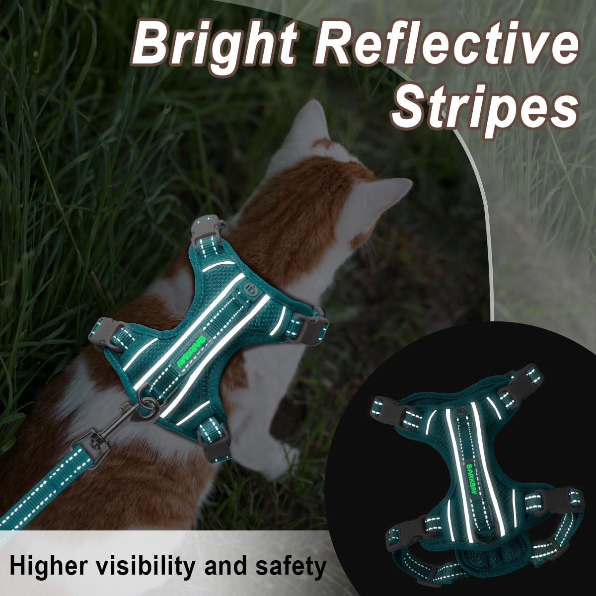 - Higher Visibility and Safety: Reflective materials provides good visibility in the dark, which can be easily seen from a distance, ensuring the safety of furry friends.erials and meticulous techniques enable the entire harness to satisfy your kitten’s daily activities.