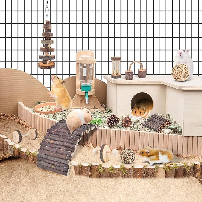 - 【Natural Entertainment Place】The hamster toy pack can turn your cuties nest into a natural amusement park, the hamster activity toys immediately attracting the attention of small animals, looking for fun, and providing an ideal place for sports. Let your cuties live in an cage, not boring anymore.