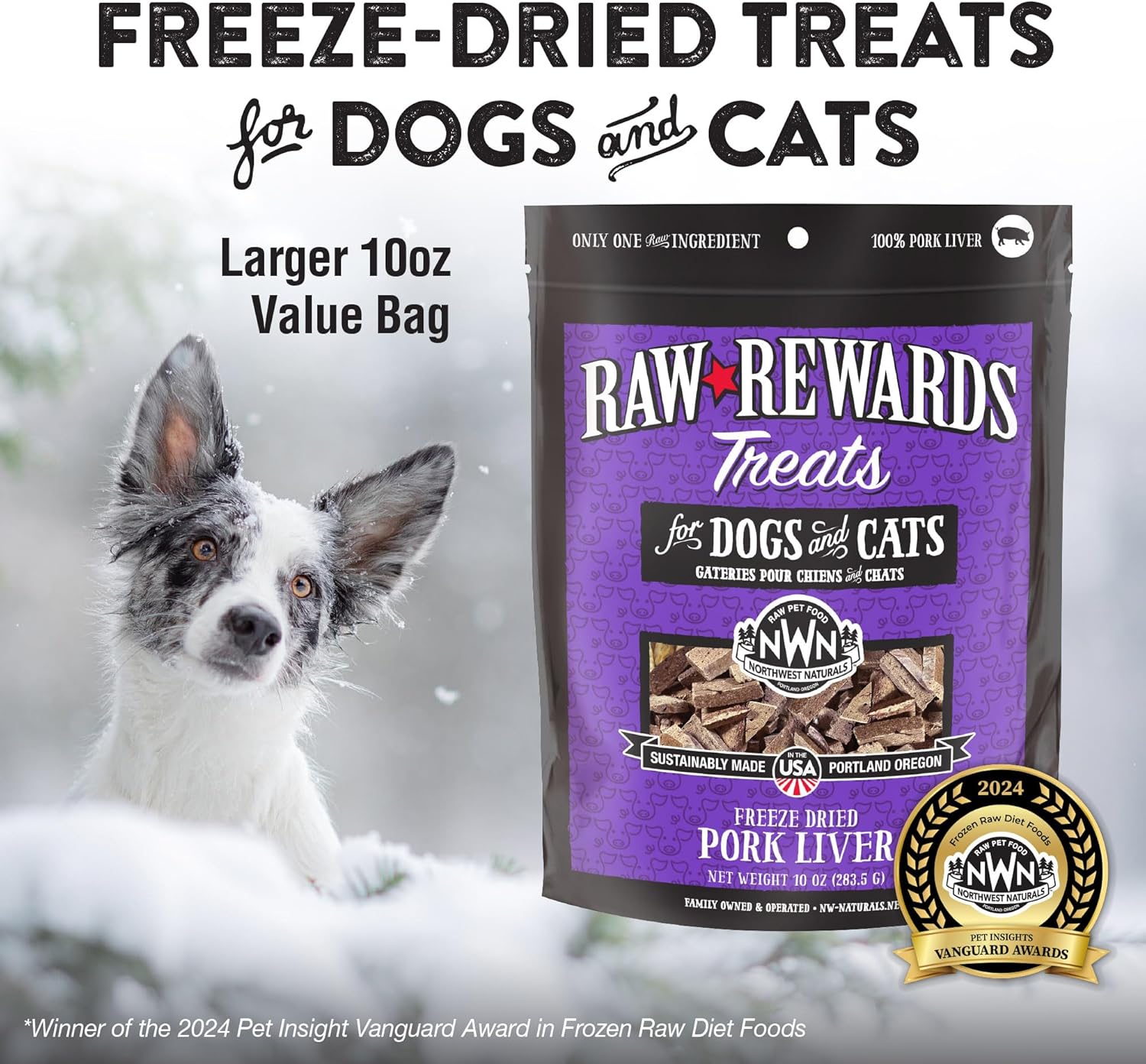 Northwest Naturals Raw Rewards Freeze-Dried Pork Liver Treats for Dogs and Cats - Bite-Sized Pieces - Healthy, 1 Ingredient, Human Grade Pet Food, All Natural - 10 Oz