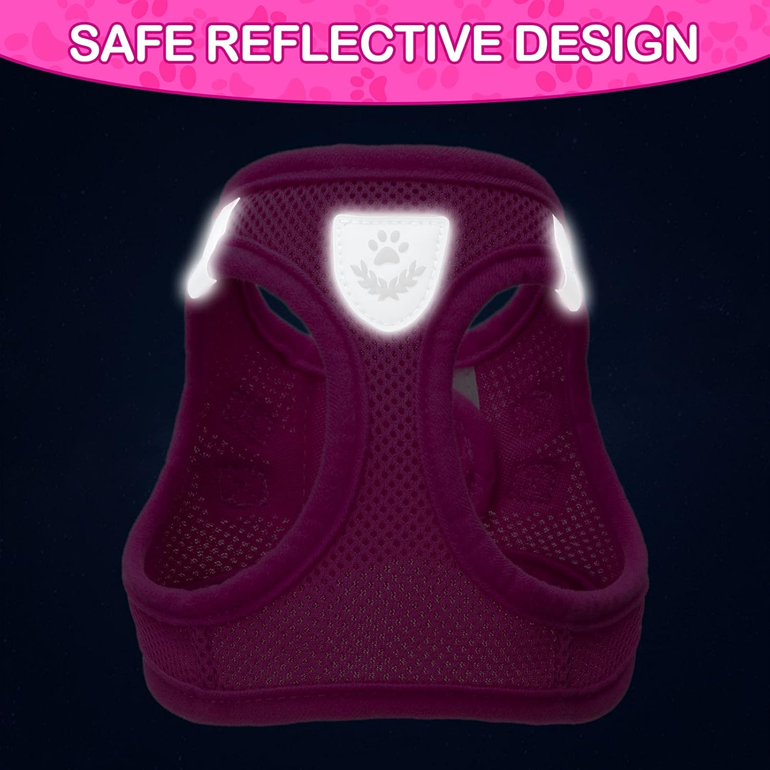 PUPTECK Adjustable Dog Harness Collar and Leash Set Step in No Pull Pet Harness for Small Medium Dogs Puppy and Cats Outdoor Walking Running, Soft Mesh Padded Reflective Vest Harnesses, Solid Pink S