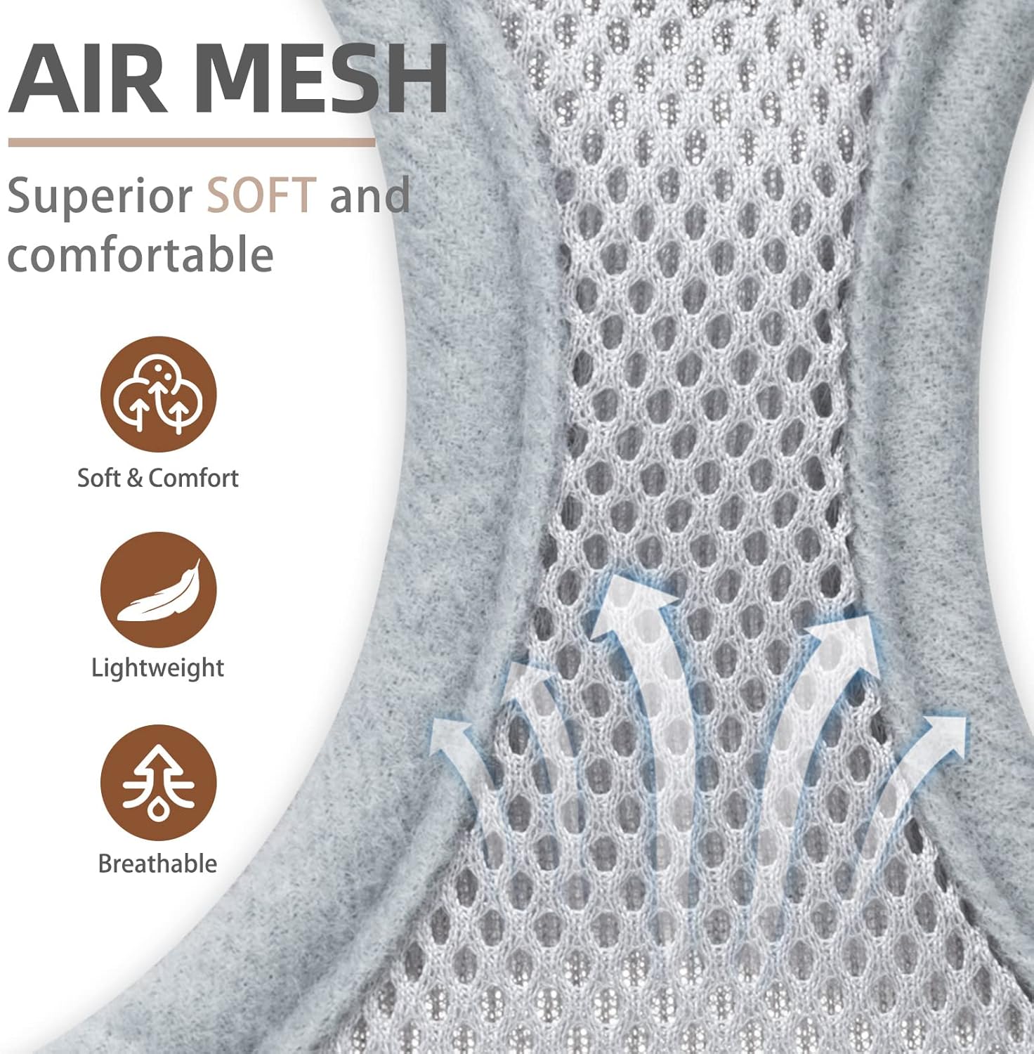 - [COMFORTABLE MATERIAL, DAILY WALKING, FOUR SEASONS WEARING] - The harness is made of durable polyester, and it's adopted with an air-mesh design. The whole harness is very soft, lightweight, and breathable. Even if your dog wears it all day, he won't feel any discomfort. For daily walking or running, it is a very easy thing to do. Besides, this is a four seasons harness, it keeps the dog cool on hot days and keeps the dog warm on cold days.