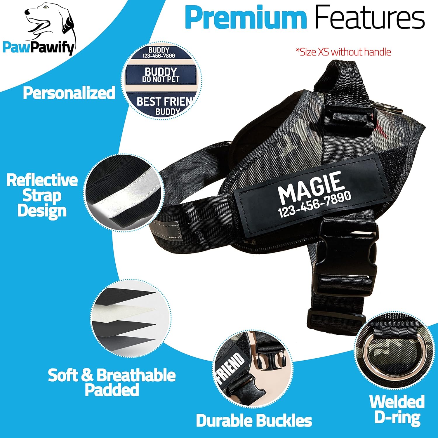 PawPawify Custom No Pull Dog Harness with Name and Phone Number, Heavy Duty Personalized Pet Vest to Prevent Tugging, Pulling, or Choking, Training and Walking (Camouflage Green, XL (Chest 28-35in))