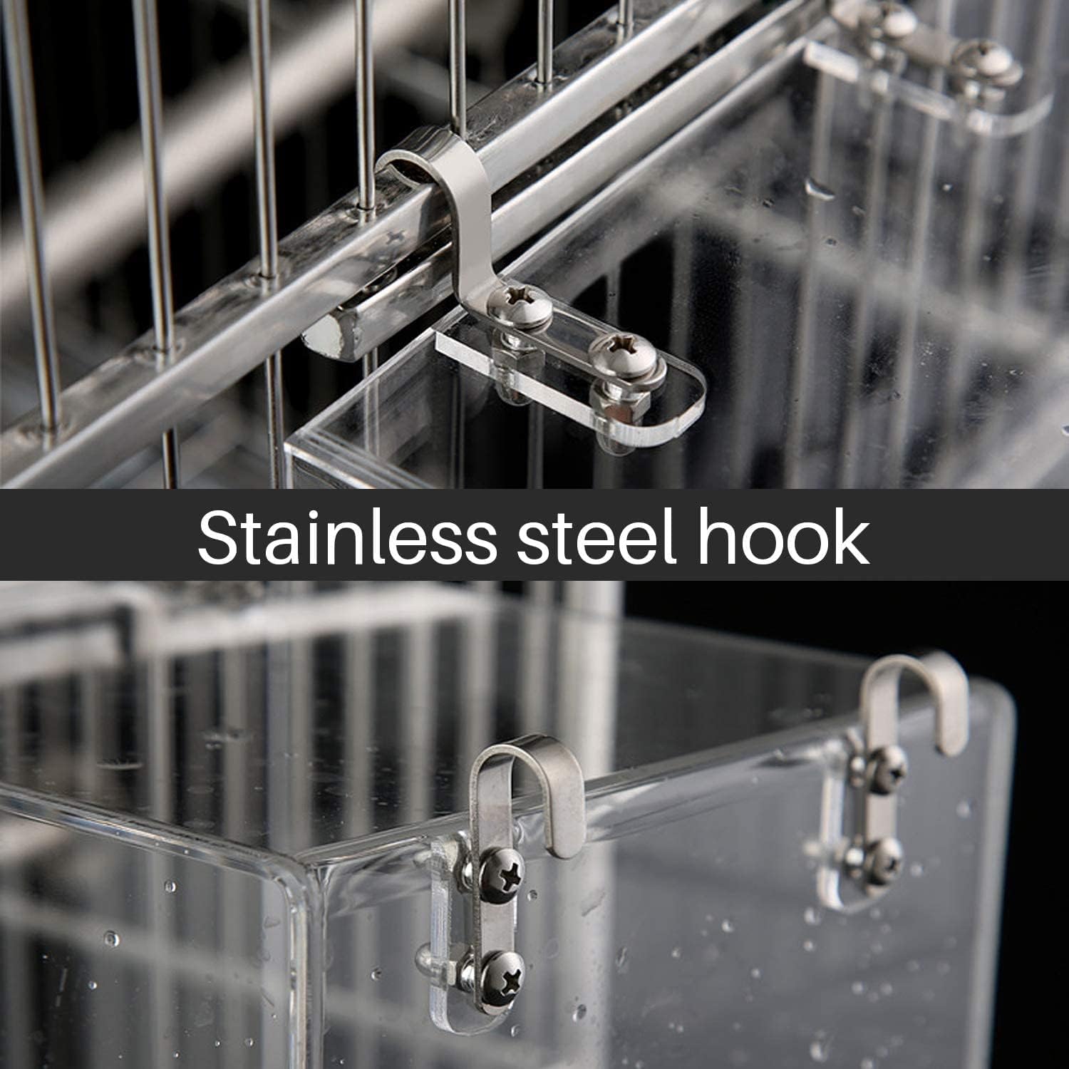 - ๐คEasy to install There are two hooks in both directions. You can install the hooks in two positions to hang on the inside or outside of the cage. It is very convenient to use.