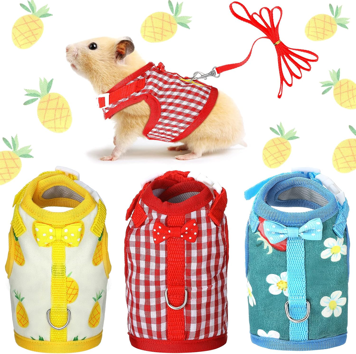 Weewooday 3 Pieces Guinea Pig Harness with Leash Small Pet Harness Fruit Plaid Pattern Adjustable Padded Walking Vest for Pet Hamster Squirrel Animals(Pineapple, Red Plaid, Strawberry,Small)