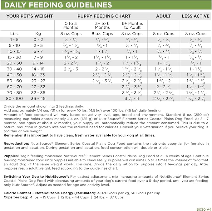 - CONTAINS: (1) 4LB Bag of NutriSource Element Series Coastal Plains Dry Dog Food