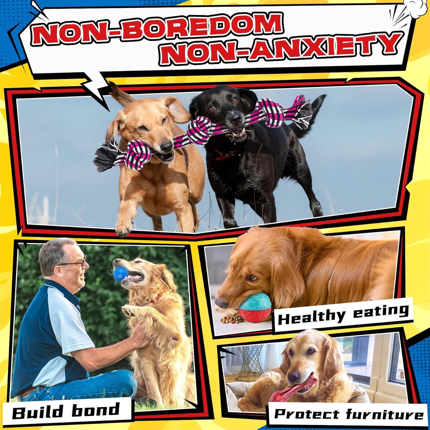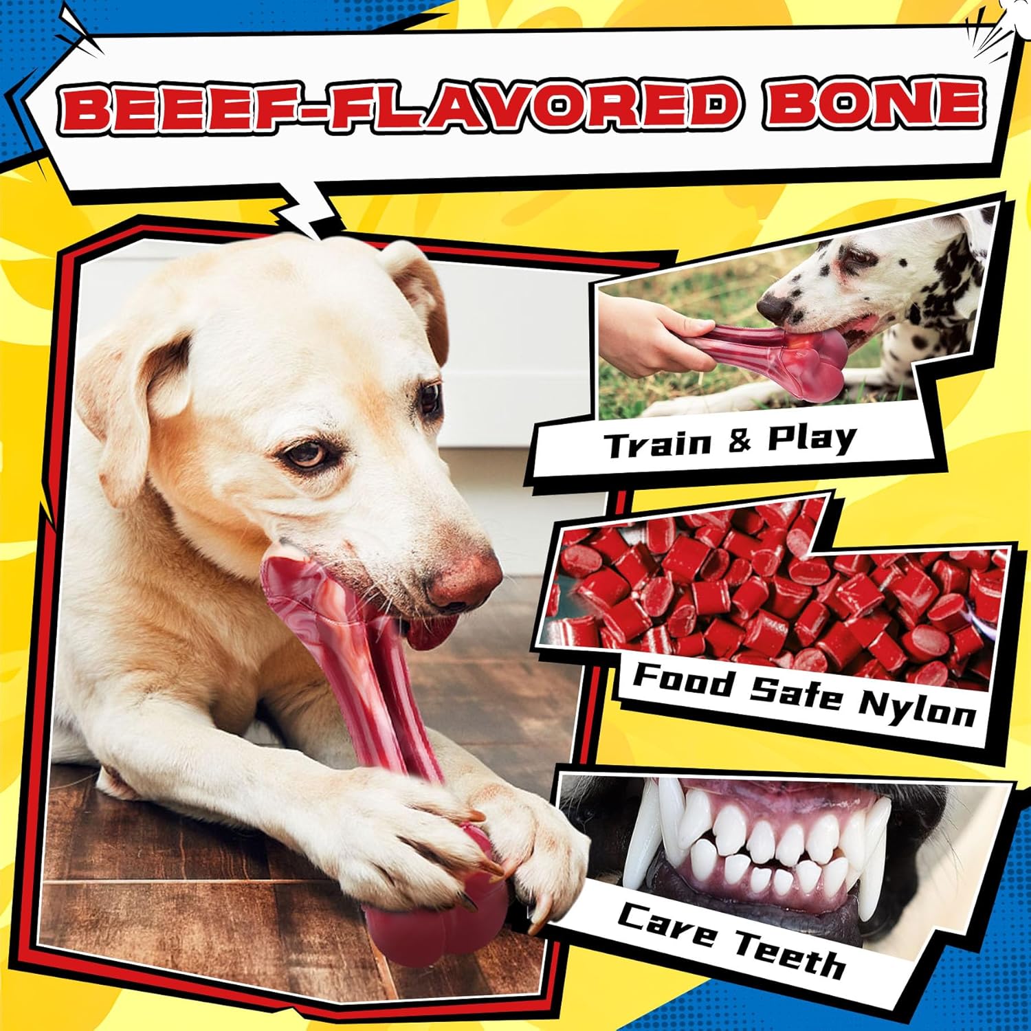 - Reliable Materials:Tough rope toy in natural, washable cotton, resistant to biting and gentle on teeth. Squeaky toys in nature rubber,gentle but tough.Beef-flavored nylon bone chew toy. Safe toys ensure your dog’s health with secure play and chewing