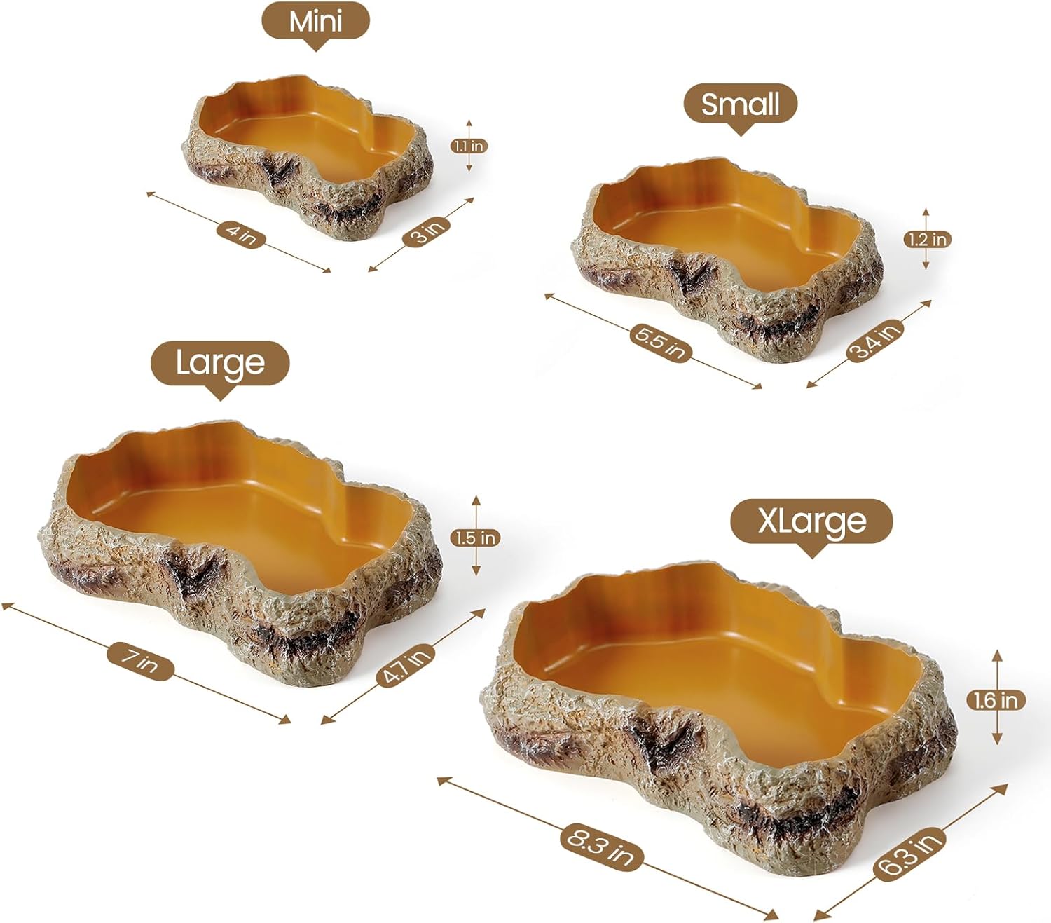 - Unique Design: This food bowl imitates the texture and shape of the rock. A realistic terrarium decoration will add aesthetic to any reptile habitat whether it be tropical, jungle, or desert-themed. It can blend right into terrariums and vivariums