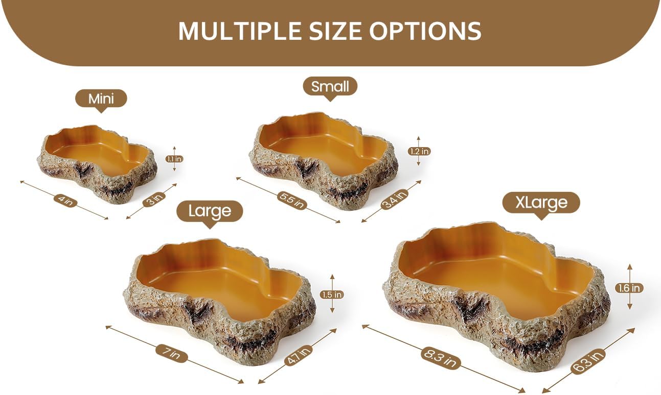 - Realistic Rock Texture: The reptile bowl imitates the design of the rock, 100% restores the real living environment, makes your pet more adaptable, and blends in, which will attract your pets to eat and drink more. As a decoration, it will be unique
