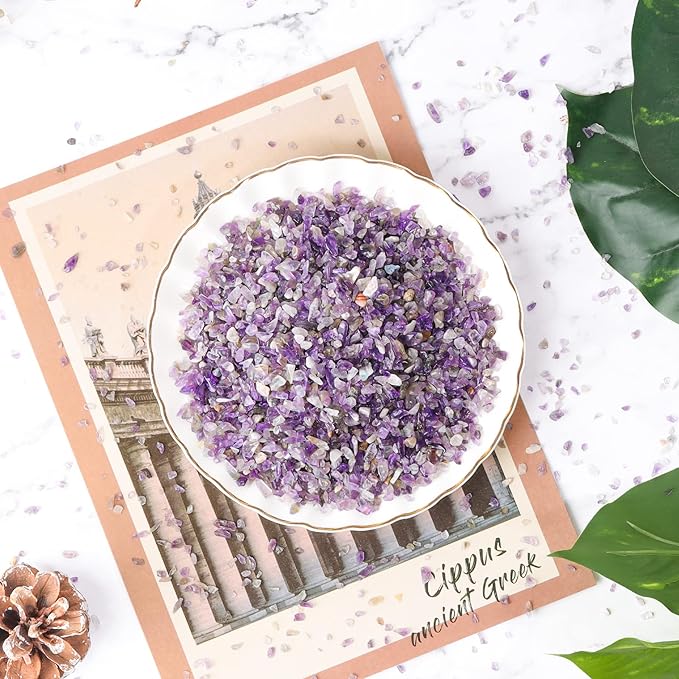 - Natural Crushed Amethyst: Made of selected gemstone chips with no hole irregular shapes, 2 pound (900 g) weight and 5-7 mm (0.1"-0.3") in size. As succulent rocks, they are also a good choice for decoration of various other plants