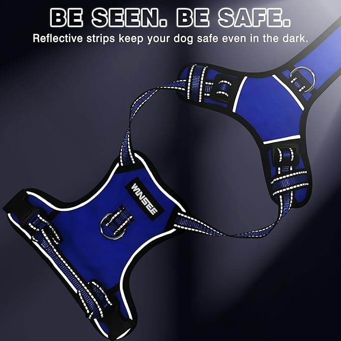 WINSEE Dog Harness No Pull, Pet Harnesses with Dog Collar, Adjustable Reflective Oxford Outdoor Vest, Front/Back Leash Clips for Small, Medium, Large, Extra Large Dogs, Easy Control Handle for Walking
