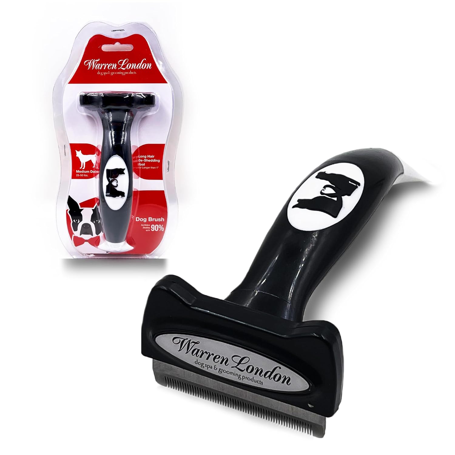Warren London Medium Long-Hair Deshedding Brush | 2.5″ Stainless ¼″ Teeth | Breaks Up Mats & Captures Loose Undercoat | For Spaniels, Aussies & Mixed Breeds