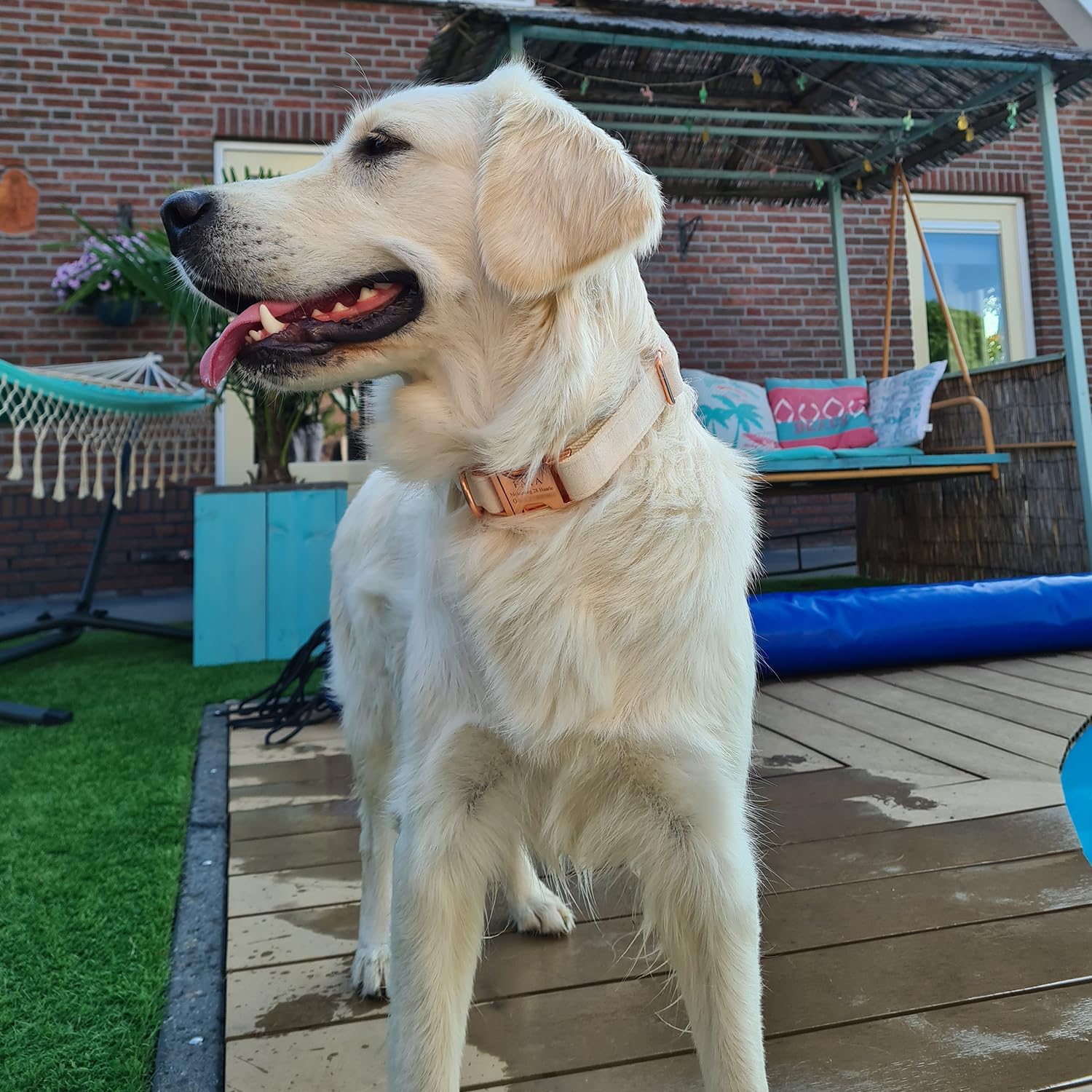 - CLEAR DURABLE LASER-ENGRAVED TEXT: Your customized text ( dog name, phone number and other texts ) will be clearly engraved at the center of the metal buckle by laser, which is not easy to be faded.