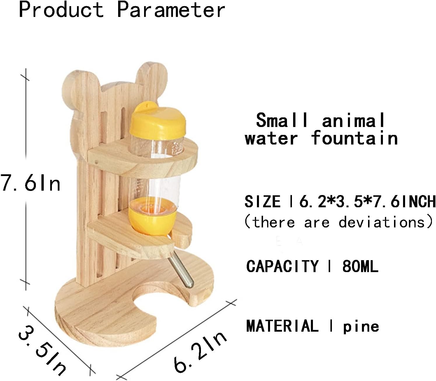 - Small Animal Water Dispenser Size : Hamster water bottle holder is 6.3 × 3.5 × 7.6 inches, hamster water bottle capacity is 80 ml, easy to fill and clean (After the installed water bottle, it is normal to drip naturally in the first few minutes)