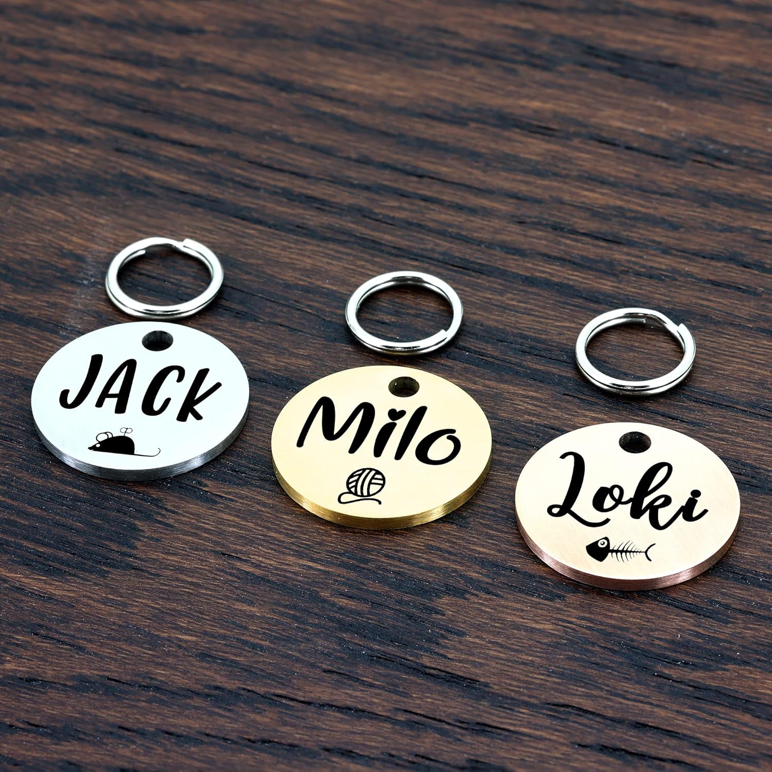 - Perfect Pet Tags for Cats & Small Dogs: Specifically designed for small pets, our pet collar tags are thick and durable yet lightweight. Each name tag comes with two sizes of stainless steel split rings for easy attachment to your pet's collar, ensuring a secure fit without adding unnecessary weight.