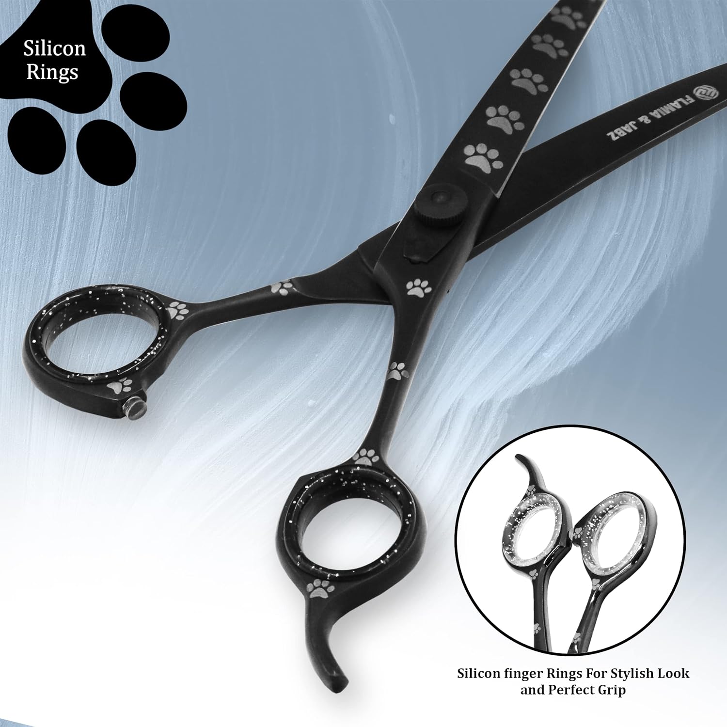 - Flamia & Jabz Professional 8" Pet Grooming Curved Scissors with Paw Prints, made of High Quality Stainless Steel