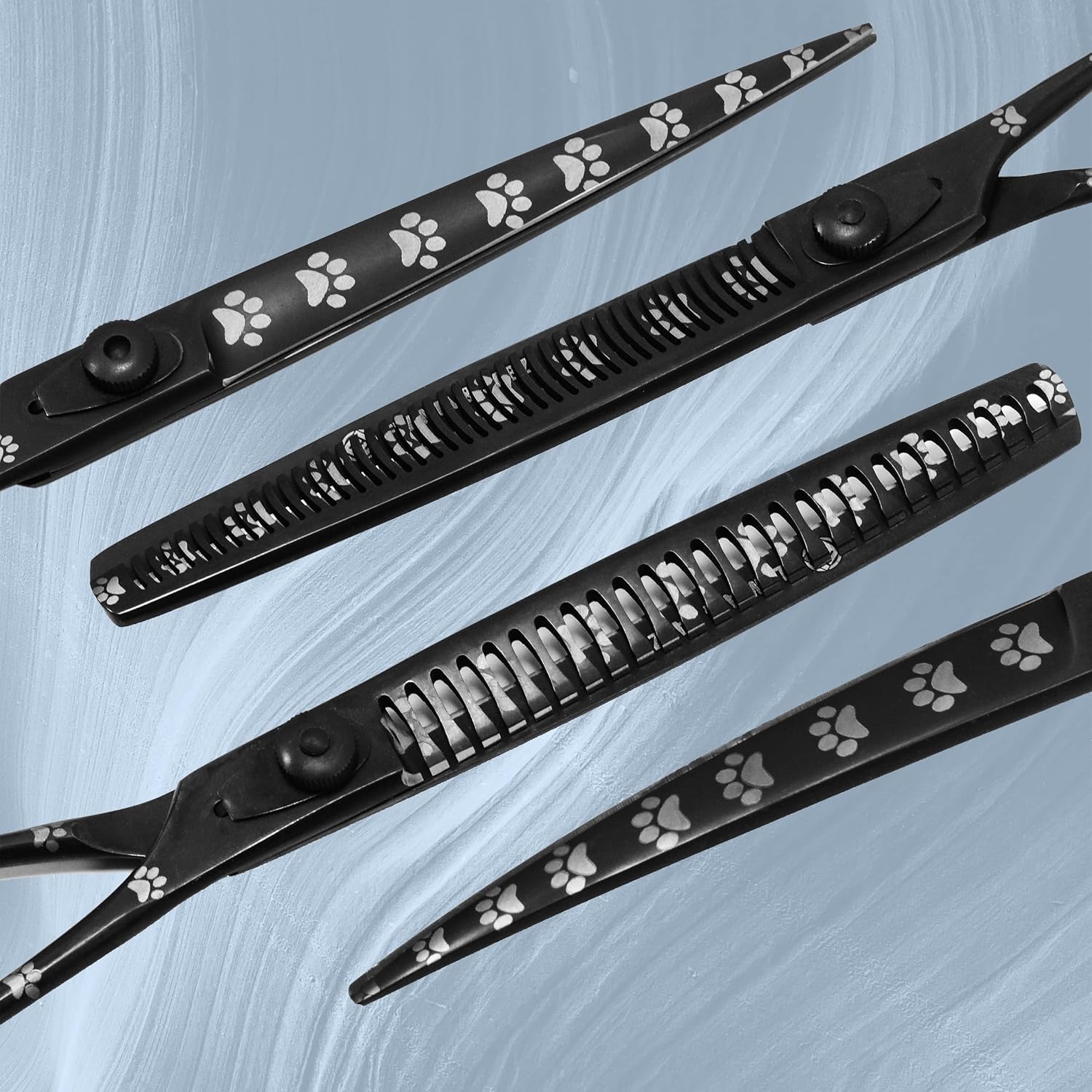 - Flamia & Jabz Professional 8" Pet Grooming Scissors Set with Straight, Curved, Thinner / Blenders & Chunker Shears with Paw Prints, made of High Quality Stainless Steel